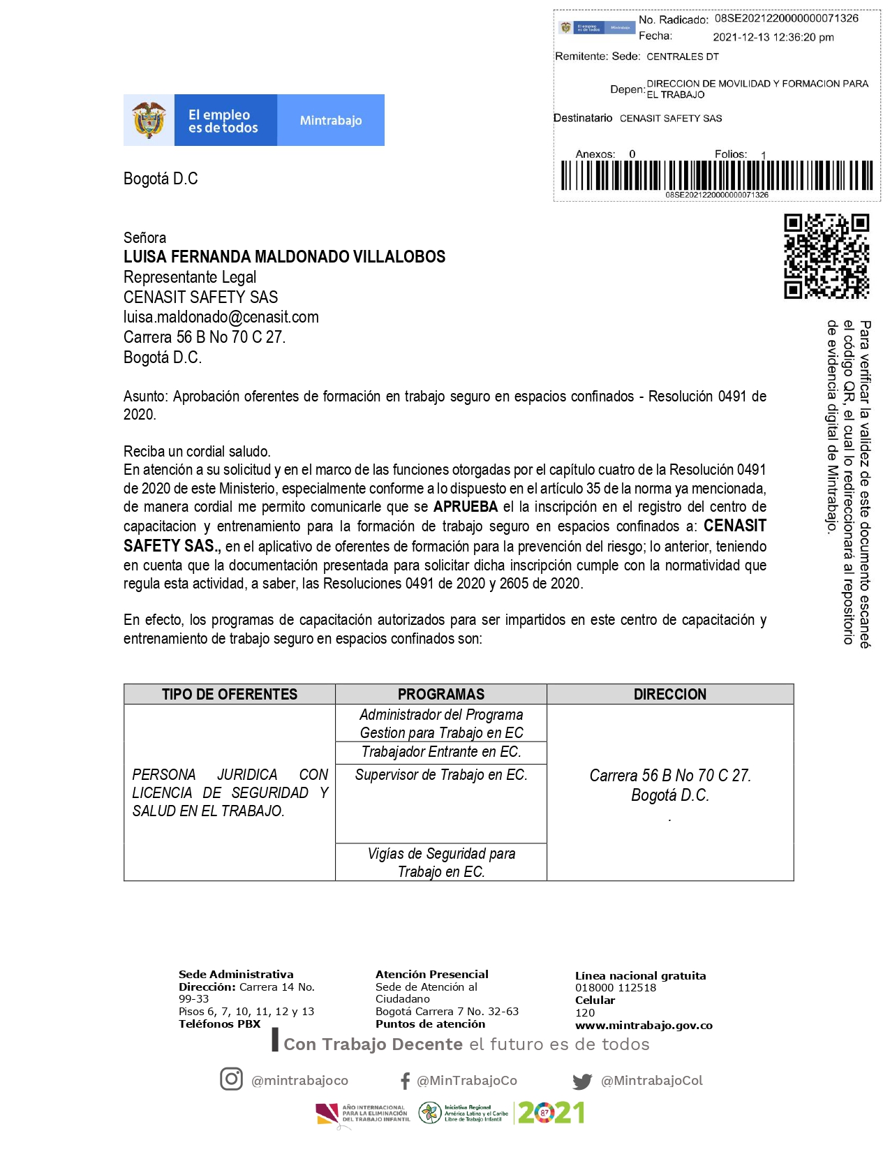 CENASIT SAFETY S.A.S